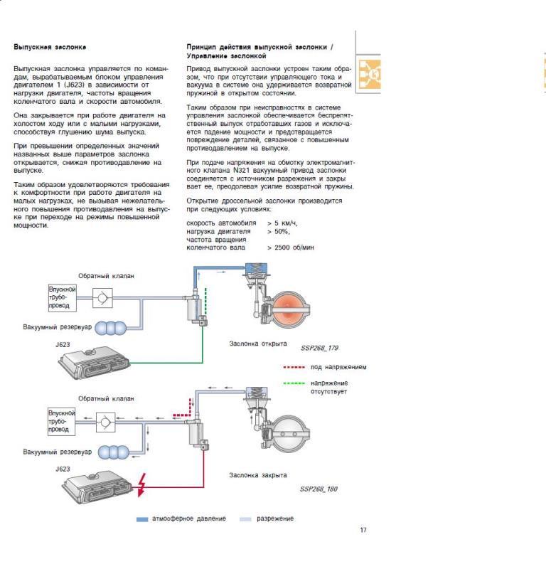 Ребят подскажите кто знает! Совсем недавно обнаружил что у меня на левом глушителе в самом конце на выходе трубы стоит заслонка, работает от вакуума, управляется клапаном электромагнитным! Вообще, что это такое, для чего это нужно и как работает??? Проверял в разных режимах работы, на холостых и на оборотах, в режиме динамик и в стандартном режиме- у меня ничего не происходит, она всегда открыта! Проверил лягушку- держит, вакуум есть, клапан исправен, питание есть на клапан, да и ошибок нет никаких! Что это и как работает подскажите!!! Спасибо