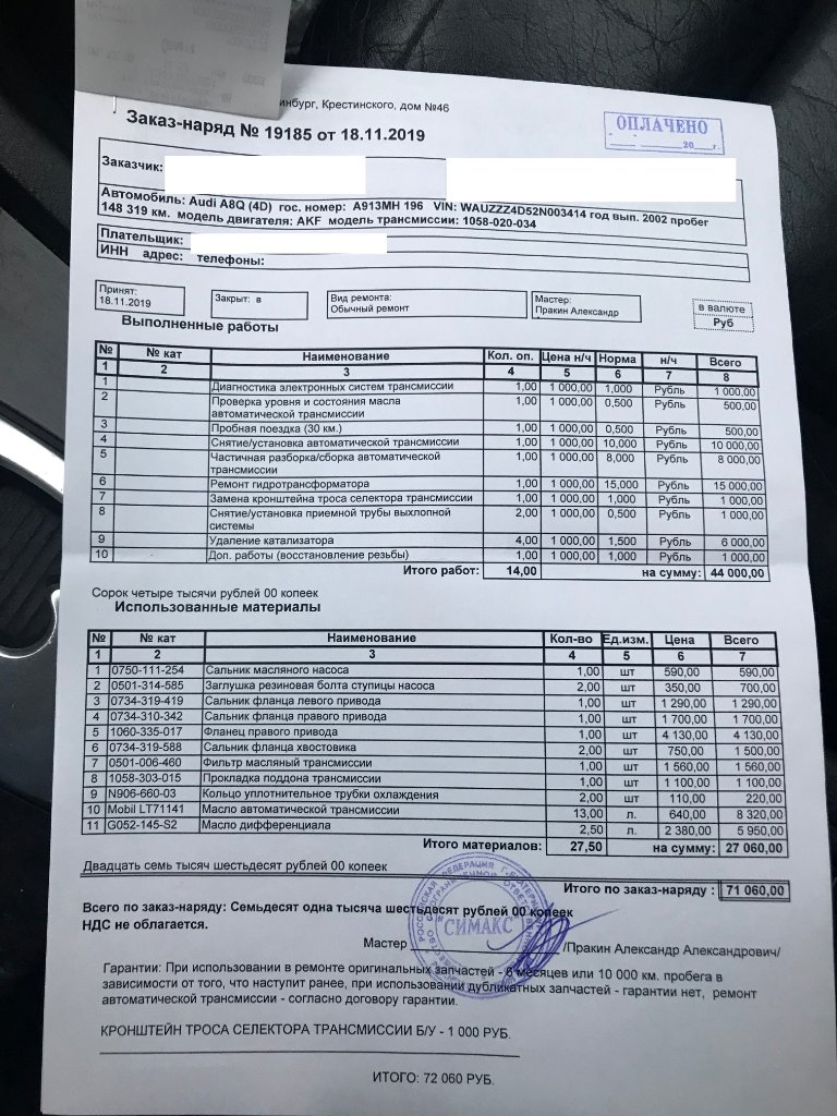 Сейчас машина в ZF-сервисе, снимают коробку, будут дифектовать, пока 100% что умерла блокировка гидротрансформатора.
