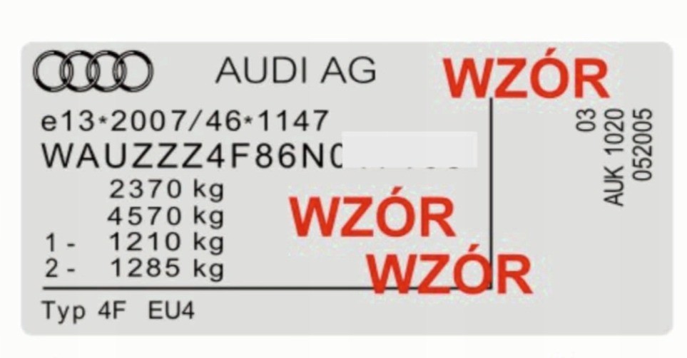 Наклейка установлена на средней стойке со стороны переднего пассажира у А8 4Н.Там указан vin машины.