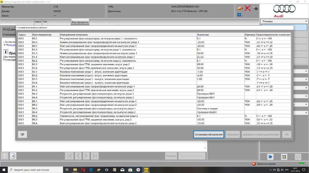 Вчера разобрал фазик выпускного распредвала - была победа, по неизвестным причинам лопнула пружина(пластина в форме полумесяца), поджимающая уплотнительную пластину, в итоге масло попросту переливалось из одной камеры в другу, это и объясняет стук с зади и отсутствие правильного регулирования. Т.К. живу в 250км от ближайшей разборки (спб) пришлось импровизировать, в итое была найдена точно такая же пластина от другого фазика, всё собрано в обратном порядке, поменян на всякий масл. фильтр (тот уже был подзабит остатками нагара старого масла). Запуск, всё отлично, 93 канал второй ряд - впуск - +1, выпуск -1, прогрел до 90 - всё чётко, но 93 выпуск стал -2. пробная поездка - впуск стал -2, выпуск -4, через минуту ровной езды - выпуск стал - 5, еще через минут -4, потом и вовсе значения выпускного опять пропали, приехал обратно в гараж, двигатель работает ровно, дал газу и снова затроил, только теперь пропуски в 6 и 8 цилиндре и опять ошибка на медленное регулирование выпускного распредвала. Стук кстати пропал. У кого какие мысли?