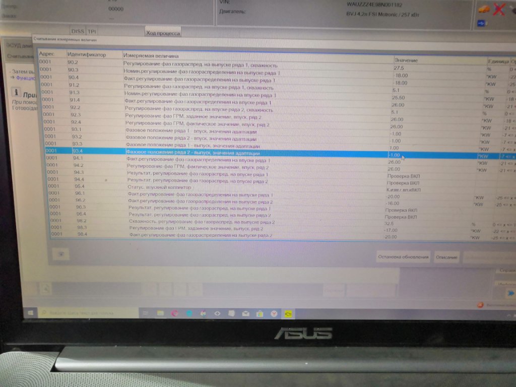 Вчера разобрал фазик выпускного распредвала - была победа, по неизвестным причинам лопнула пружина(пластина в форме полумесяца), поджимающая уплотнительную пластину, в итоге масло попросту переливалось из одной камеры в другу, это и объясняет стук с зади и отсутствие правильного регулирования. Т.К. живу в 250км от ближайшей разборки (спб) пришлось импровизировать, в итое была найдена точно такая же пластина от другого фазика, всё собрано в обратном порядке, поменян на всякий масл. фильтр (тот уже был подзабит остатками нагара старого масла). Запуск, всё отлично, 93 канал второй ряд - впуск - +1, выпуск -1, прогрел до 90 - всё чётко, но 93 выпуск стал -2. пробная поездка - впуск стал -2, выпуск -4, через минуту ровной езды - выпуск стал - 5, еще через минут -4, потом и вовсе значения выпускного опять пропали, приехал обратно в гараж, двигатель работает ровно, дал газу и снова затроил, только теперь пропуски в 6 и 8 цилиндре и опять ошибка на медленное регулирование выпускного распредвала. Стук кстати пропал. У кого какие мысли?