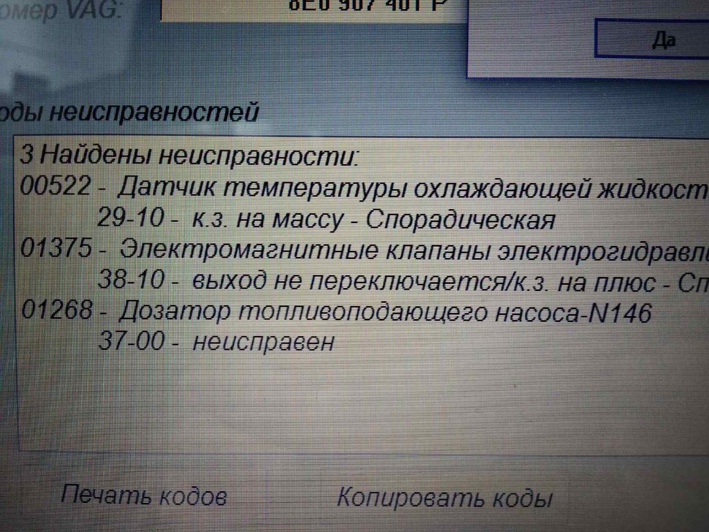 Прошу помочь, проблема появилась из не откуда. Вечером залил полный бак и поставил машину в гараж. Утром не запустилась, даже не чихнула ни разу. Подключил шнурок и выдало вот такие ошибки (фото прилагаю).