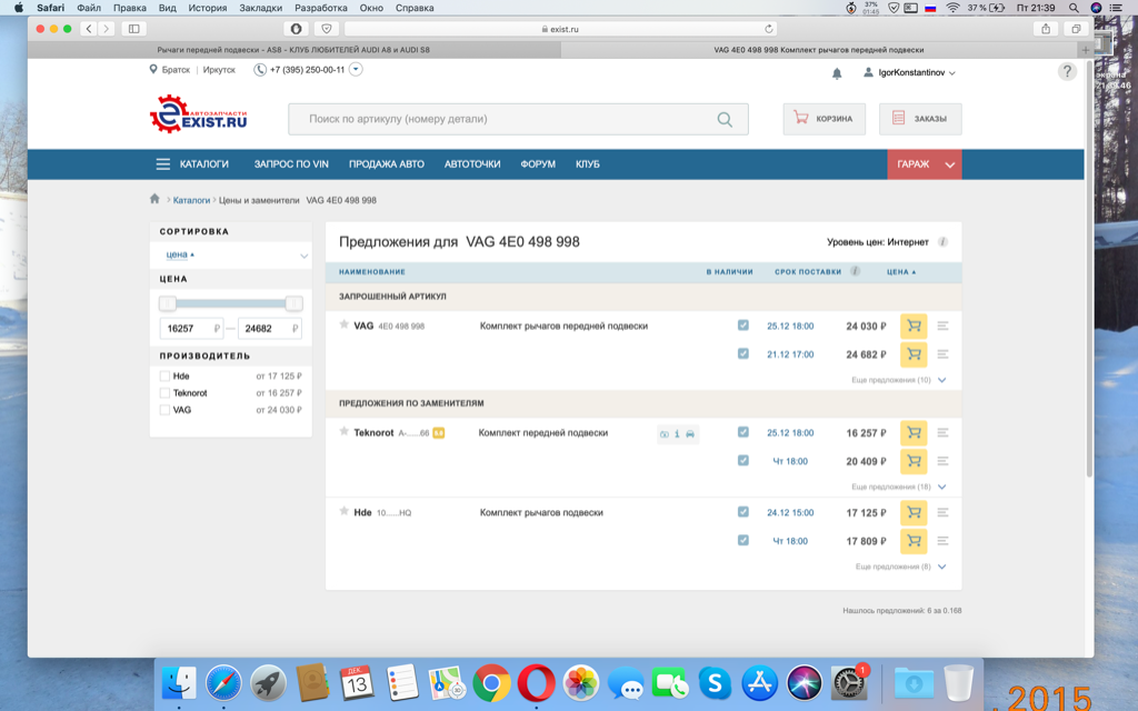 Добрый вечер. Решил полностью поменять переднюю подвеску. Комплект на екзисте VAG4E0 498 998 нашел за 24000 руб. Что входит непонятно, и вообще оригинал? Еще есть с номером VAG 8D0 498 998 Рычаги передней подвески комплект, в чем отличие, под этим номером еще бьются заменители HDE 104001. Lemforder 27421 01. Delphi TC1300KIT. Monroe L 0018 . Febi 21500. Meyle 116 050 0029/HD может здесь что-то стоящее?