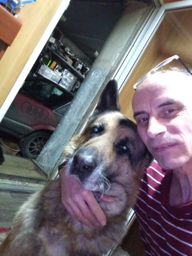 овчар уже старенький. В эту зиму пустил его жить в тамбур:)))