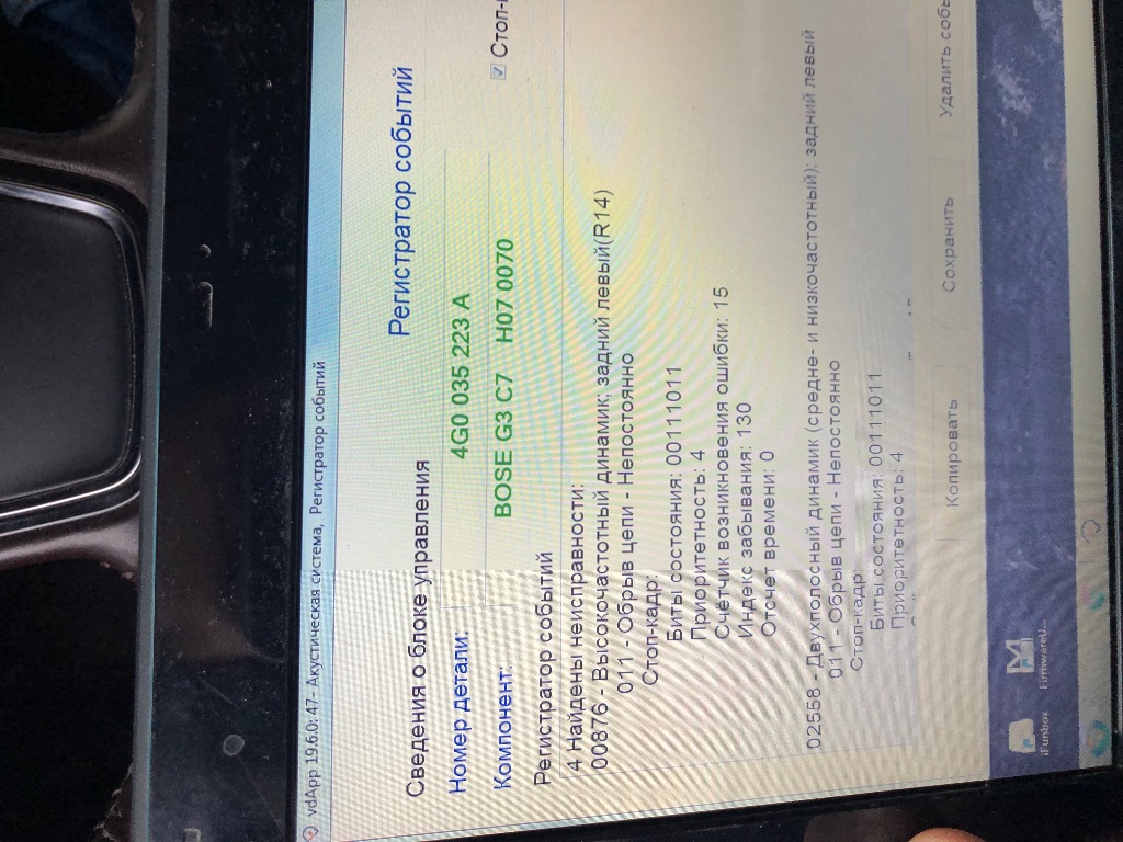 Не работают динамики в обоих задних дверях! Предохранители целы! Разъёмы проверил! Ошибки выкладываю! Тест исполнителей - тишина!!! Bose 3GP A8D4