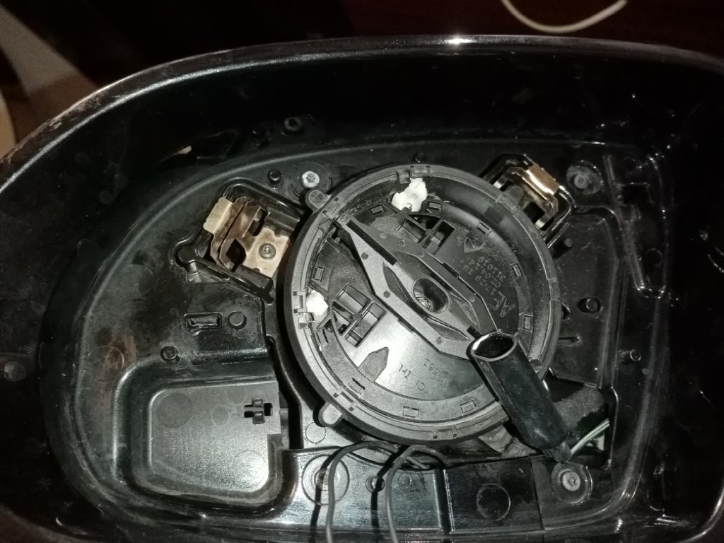 После того как сняли видим одну фишку на затемнение и два провода на подогрев отстегиваем от зеркала и стекло ставим в сторону.