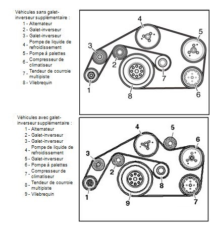 Здравствуйте. Прошу помочь, проблема следующая - При вывороте руля сильно пищит ремень + ближе к крайнему положению руль начинает крутиться с рывками. Вся беда в том, что двигатель свапнут бывшим хозяином с BNG (155кв) на BMK (165кв), по его словам двигатель с VW Phaeton. Моя схема ремня как на картинке внизу (с дополнительным обводным роликом). ETKA для Phaeton говорит ставить ремень 2475мм, для BNG с такой же схемой (с доп. обводным роликом) 2460мм либо 2490мм. теперь установлен 2490мм, старый тоже был 2490мм. на генераторе стоит обыкновенный ролик, не обгонная муфта.