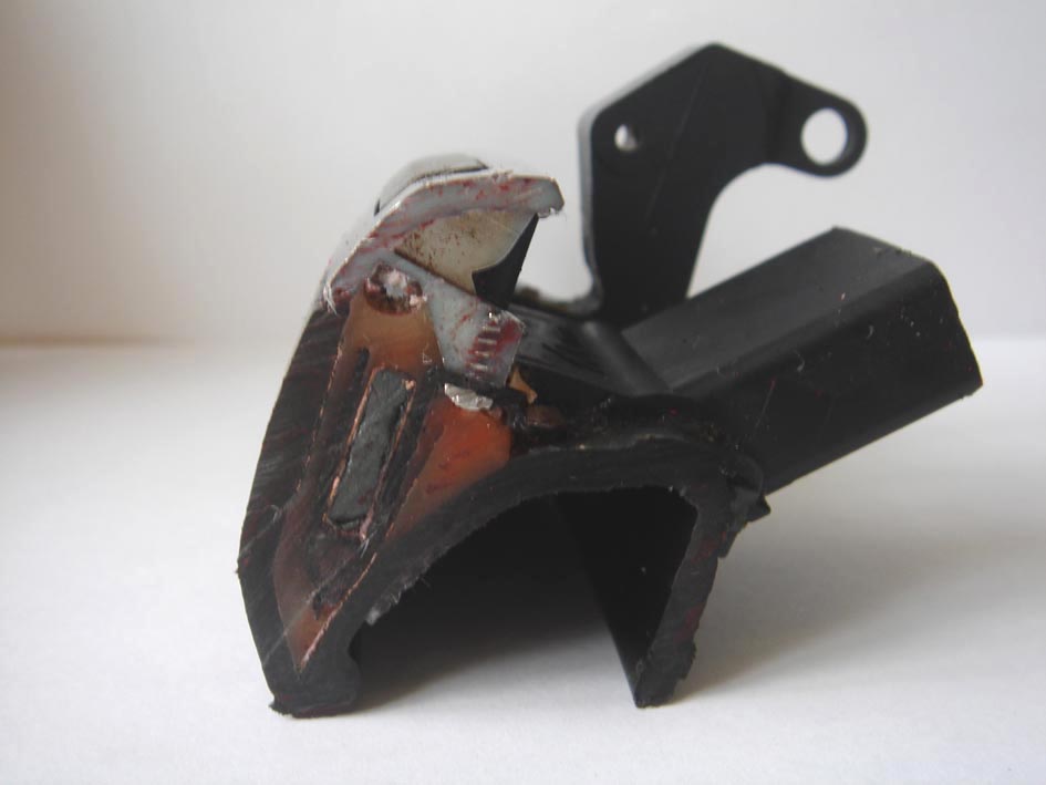 Приблизим. В центре виден магнитный сердечник, вокруг него проволока, далее - корпус модуля фишки, потом - резиновый герметик (красно-бежевый). Тут также виден болтик, которым хромированная накладка крепится к модулю