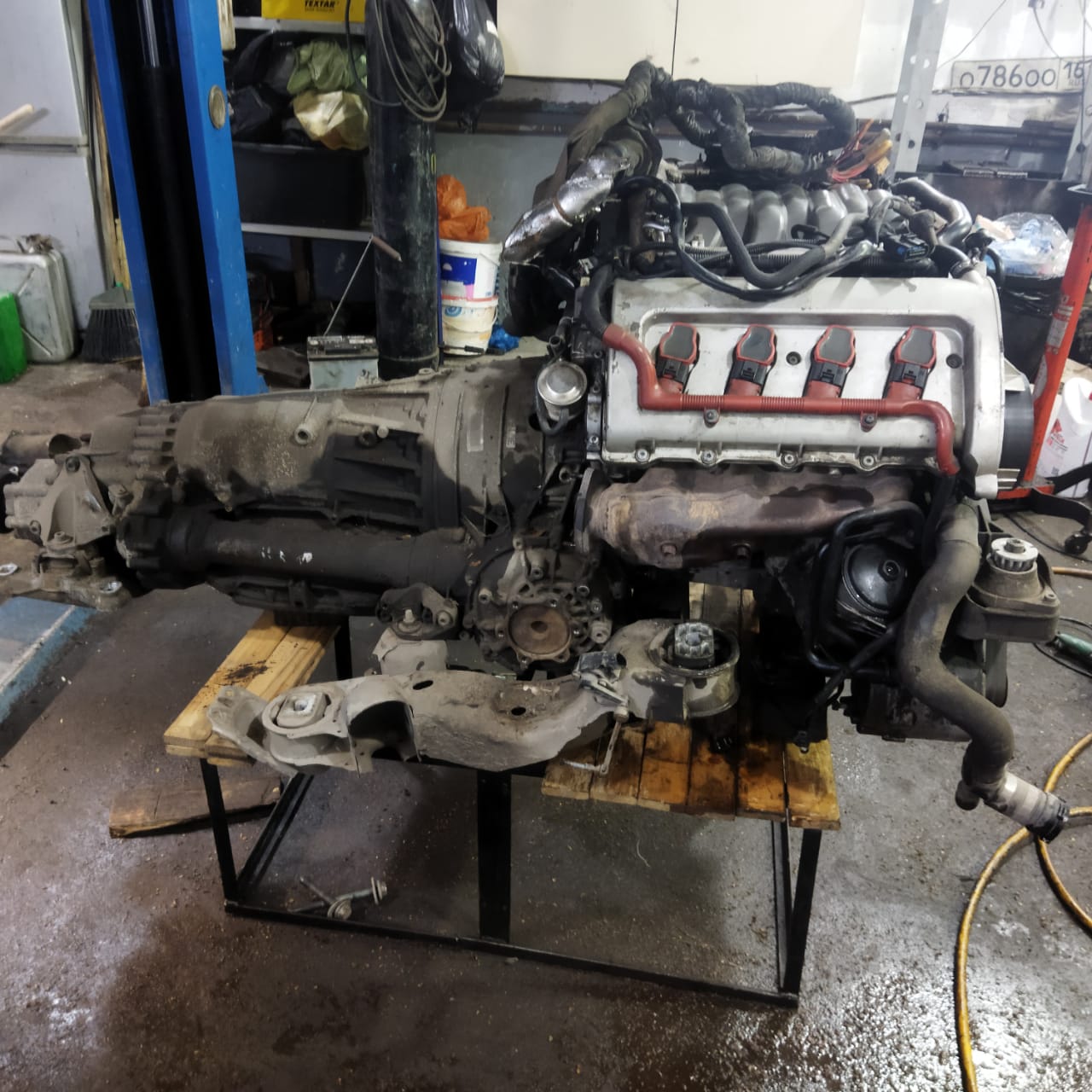Ну вот, наконец то заменил АКПП на б/у рабочую, низкий поклон Алексею. После получения АКПП помыл ее как смог, немного не рассчитывал на дополнительные расходы при замене АКПП, т.к. пришлось прошивать ее и не открутились катализаторы и пришлось снимать мотор. Заменил гофры на трубах, пару патрубков системы охлаждения, переднюю опору ДВС, топливные шланги к рамке, вечно текущий задний сальник коленвала, болты маховика и гидротрансформатора брал новые ну и по мелочи разное. Забрал машину из ремонта, проехался с АКПП все ок, все мягко и корректно, как новая работает. Правда на следующий день полетел компрессор пневмоподвески, когда разбирался, выдал ошибки по клапану и датчику температуры, пришлось колхозить с проводкой, датчик температуры поставил от туарега, а клапан был новый от мерседеса, но на обоих пришлось менять фишки.
