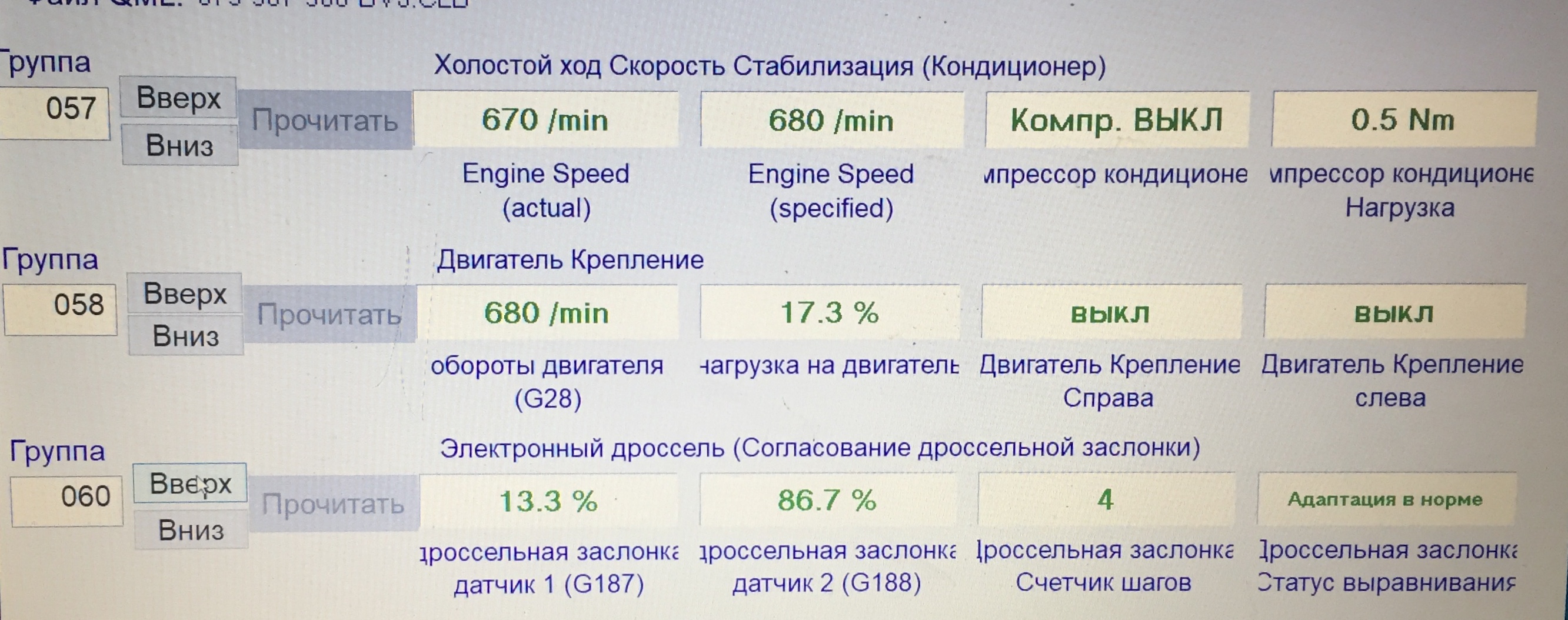 Пофоткай каналы на прогретом двигателе с отключенным кондеем.