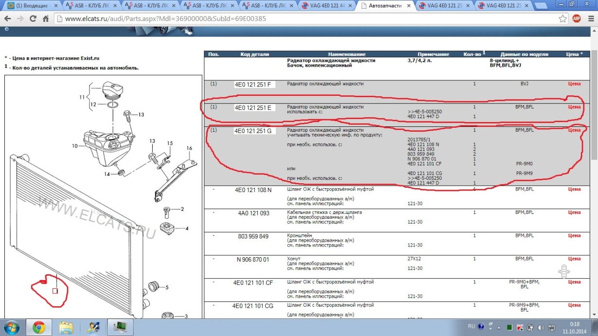 у меня A8L 2005 года V8 4.2 Двигатель BFM... Смотрю по схеме и вижу два номера: один 4E0 121 251 E, второй 4E0 121 251 G. Первый заказать не могу. Отсутствует возможность. Соответственно остается второй. Судя из вышенаписанного вами я так понял это радиатор с 4 отверстиями. Отсюда вопрос, из аналогов идет (Behr-Hella 8MK 376 719-091). То есть мне еще целый набор нужно докупать (4E0 121 108 N - 1 шт./ 4A0 121 093 - 2 шт./ 803 959 849 - 2 шт./ N 906 870 01 - 1 шт./ 4E0 121 101 CF -1 шт.) как написано в комментарии к номеру?????