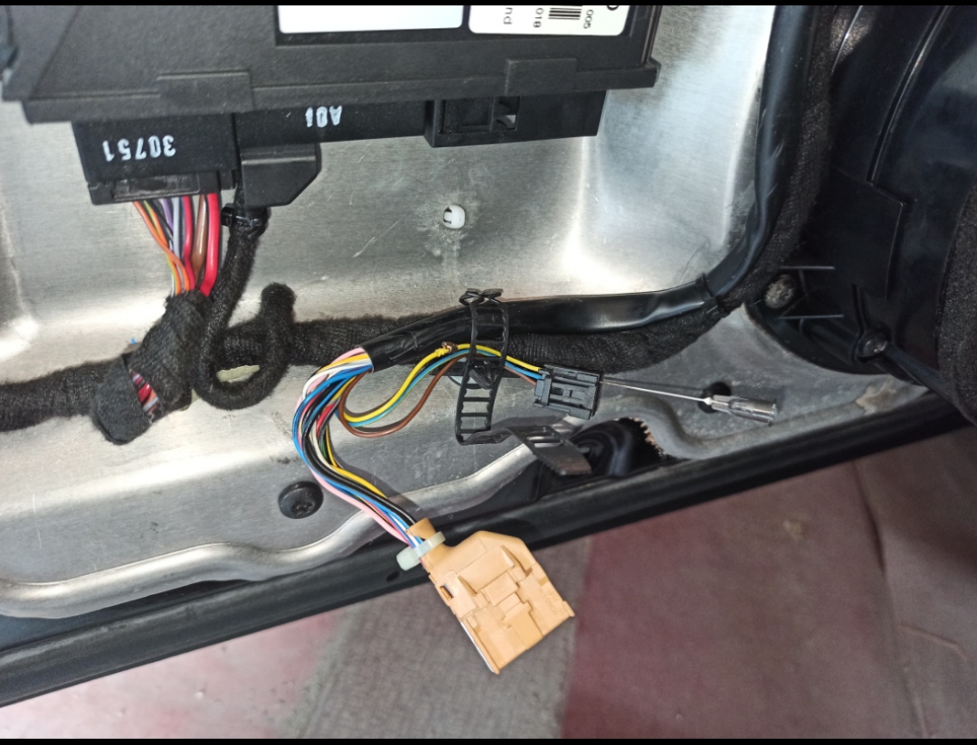 Проблема была в том что при замене стеклоподъёмника, у официального дилера, этот провод (плюс) мешал снять алюминиевую пластину за которой стеклоподъёмник, его сначала убрали из скрутки (скрутка заводская, прессованная на три провода) а потом отрезали после сборки потому что подумали что он там лишний (у вагов такое бывает - проводки универсальные) но он не лишний оказался. Спасибо что хоть не под корень отрезали.