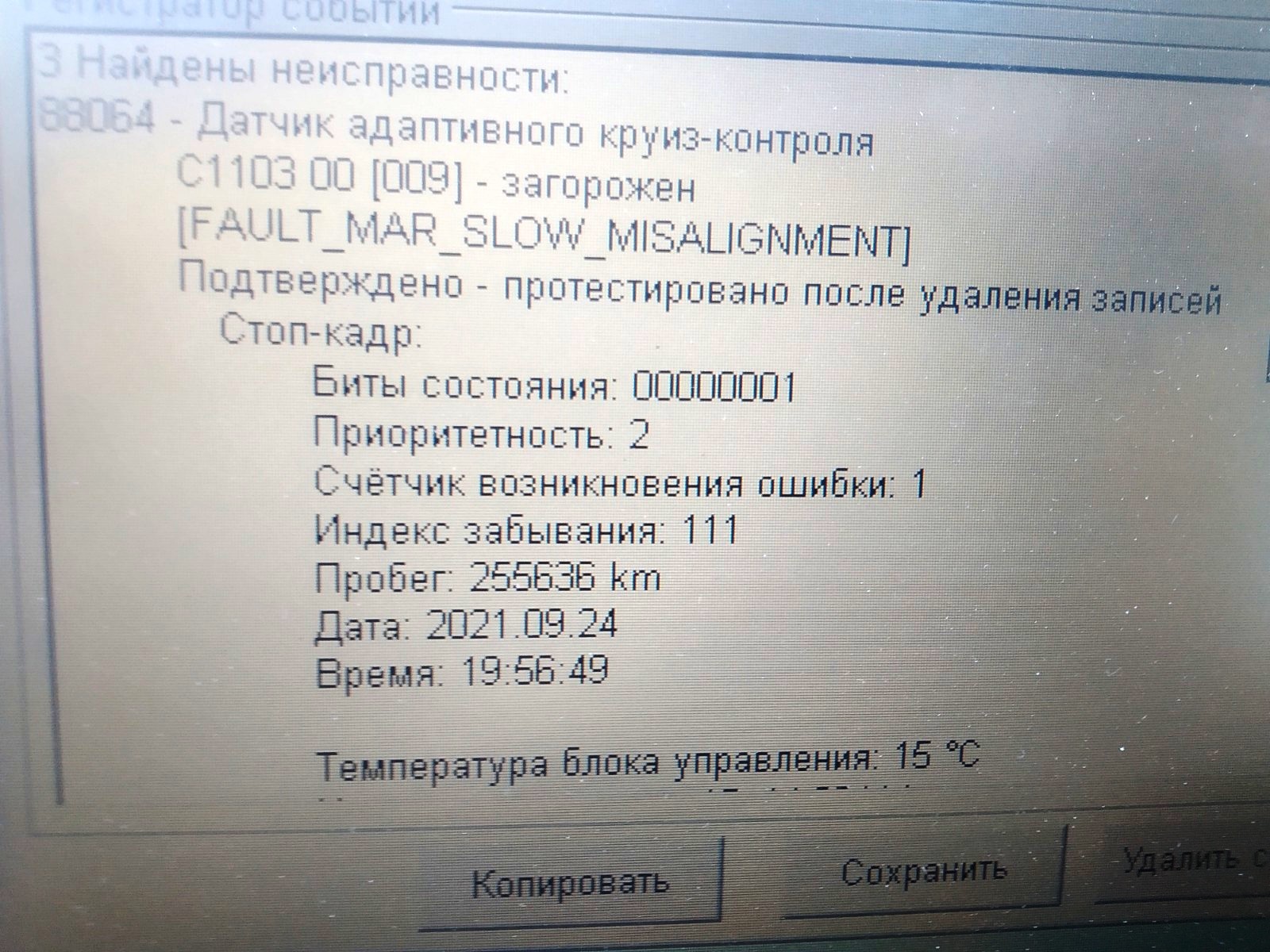 88064 - Датчик адаптивного круиза C1103 00 загорожен