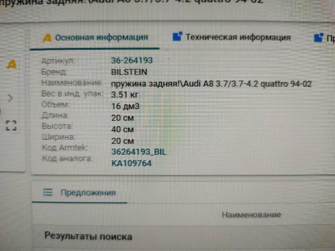 Подскажите пожалуйста какую пружину на зад взяти на А8 D2 Quattro 97г. двигатель 2,8.