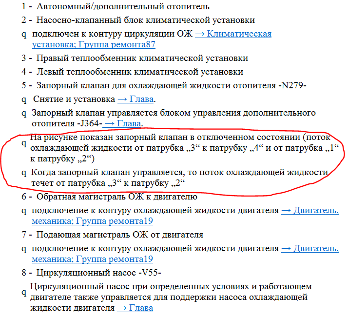 Небольшое дополнение. Сейчас делали исполнительный тест моей неработающей по непонятным причинам Webasto, и обнаружили что во время теста исполнителей молчит циркуляционный насос V55 под номером 8 на схеме. Все остальные компоненты работают и проходят тест. Что самое странное ошибки по V55 нет...и это странно. Не может же он так тихо работать что находясь возле фары я его не слышу...по сути это та же электронная помпа что и в блоке клапанов печки, и не издавать звуки она попросту физически не может. Из этого напрашивается вывод что либо его вклинило, либо туда что-то попало. Возможно в этом причина низкого давления антифриза - мешает заклинившая крыльчатка V55. Либо туда мог попасть мусор и вклинить насос. Нужен визуальный осмотр и дефектовка.