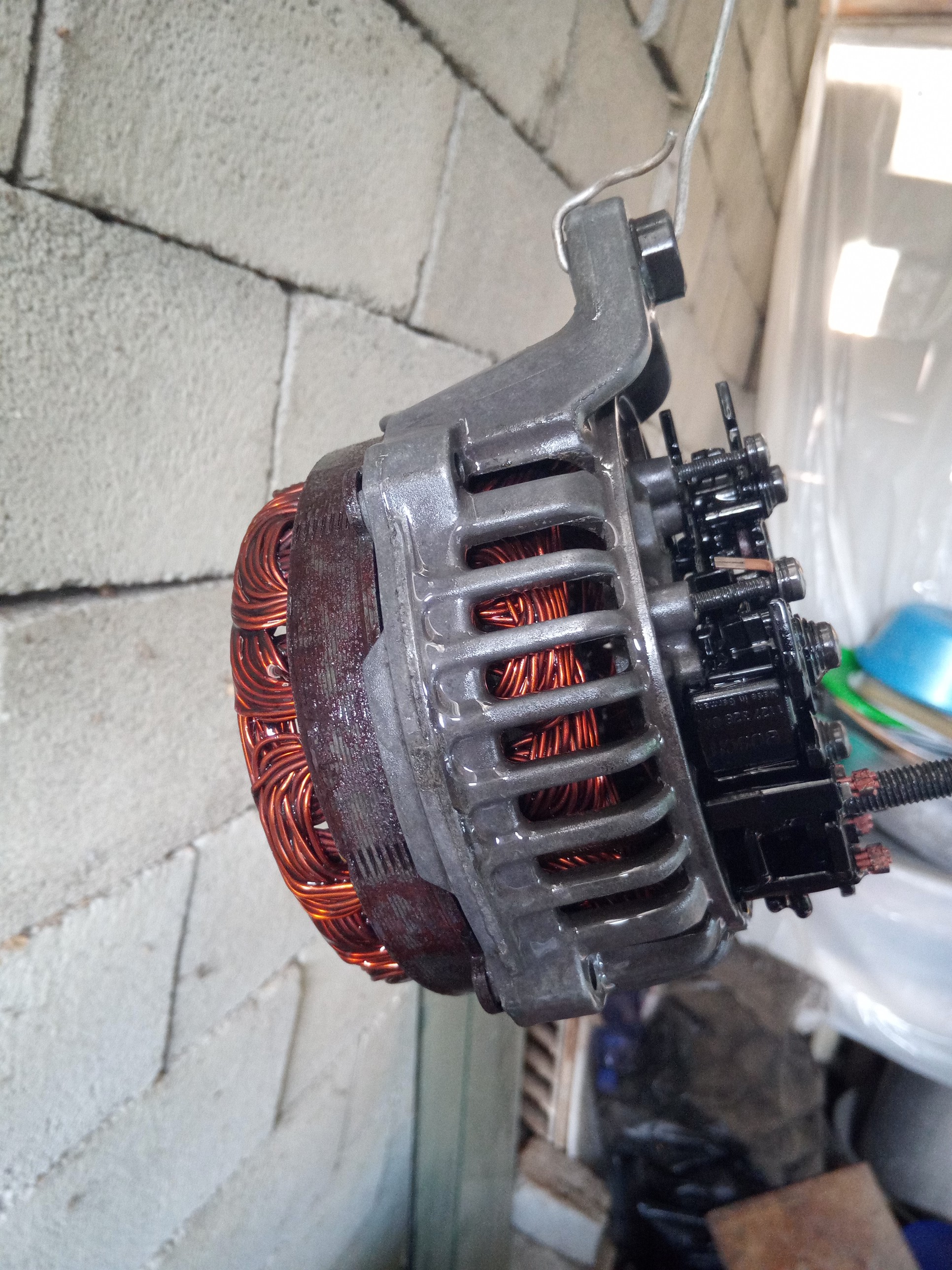 Давно не писал я у себя тут,черкану пару строк,что бы хоть не забыть ремонты свои)),в общем взял я тогда свою гену и разобрал от и до и сделал ему полный капремонт с обработкой всего на ней от окислов от коррозии и т.д.в спец.растворах и т.д.а на последок перед сборкой покрыл ещё и цапонлаком способом окунания все элементы гены,особенно обмотки ротора и статора,в общем как новая стала,новые внутренности естественно