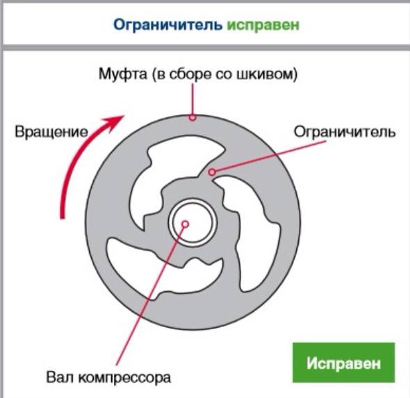 p.s. Муфта есть, её не может не быть. Вот она, изображена на схеме наших ""безмуфтовых"" компрессорах. Идет в сборе с приводным шкивом. А вот типы шикива в котором стоит муфта бывают разные. И разница тут только в том, то у нас стоит шкив постоянного вращения. Поэтому вопрос о наличии муфты закрыт. А вот вопрос о износостойкости нашего типа соединения от постоянного (включения/выключения) компрессора в автоматическом режиме кондиционера - пока остаётся актуальным.