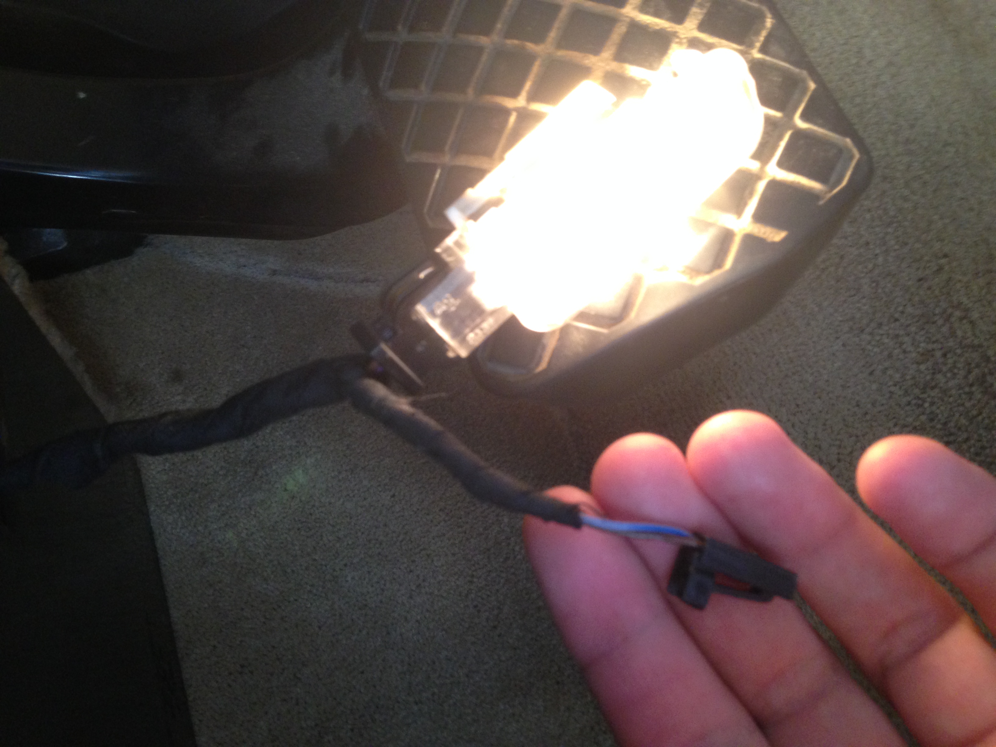 Ну что, провёл сегодня испытание заводской светодиодной подсветки для ног. И результат честно говоря меня разочаровал...подсветка светит примерно на 35% темнее чем обычная лампа 5W. Свет холодный...под бежевый салон такой свет явно не подходит. Лампа 5W с золотым светом куда лучше сочетается. В общем не разрезая штатную проводку просто сделал два конвектора на хвостах, и под 5W и под светодиоды. Скажем так, на выбор) Все обернул заводской тканевой изолентой.