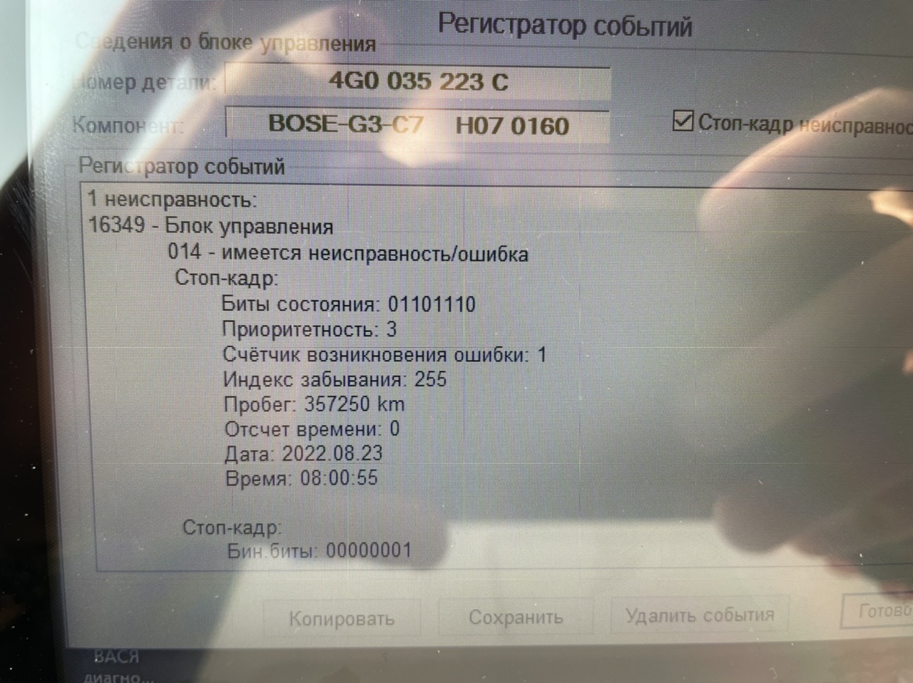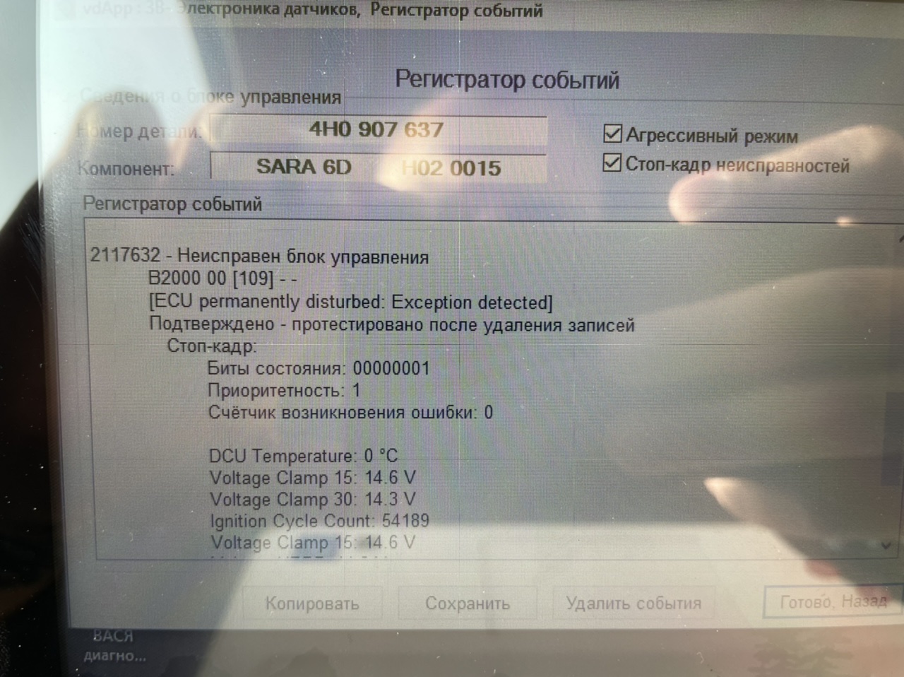 Приобрёл на оф сайте васю, подключил к машине, прочитал все ошибки, сохранил их в txt и нажал очистить все ошибки, после чего машина почему то перестала заводиться. Нажимаешь старт, она пытается крутануть, но не может и тухнет на миг приборка, потом сразу загорается. Машина а8 2011 года. В чем может быть дело?