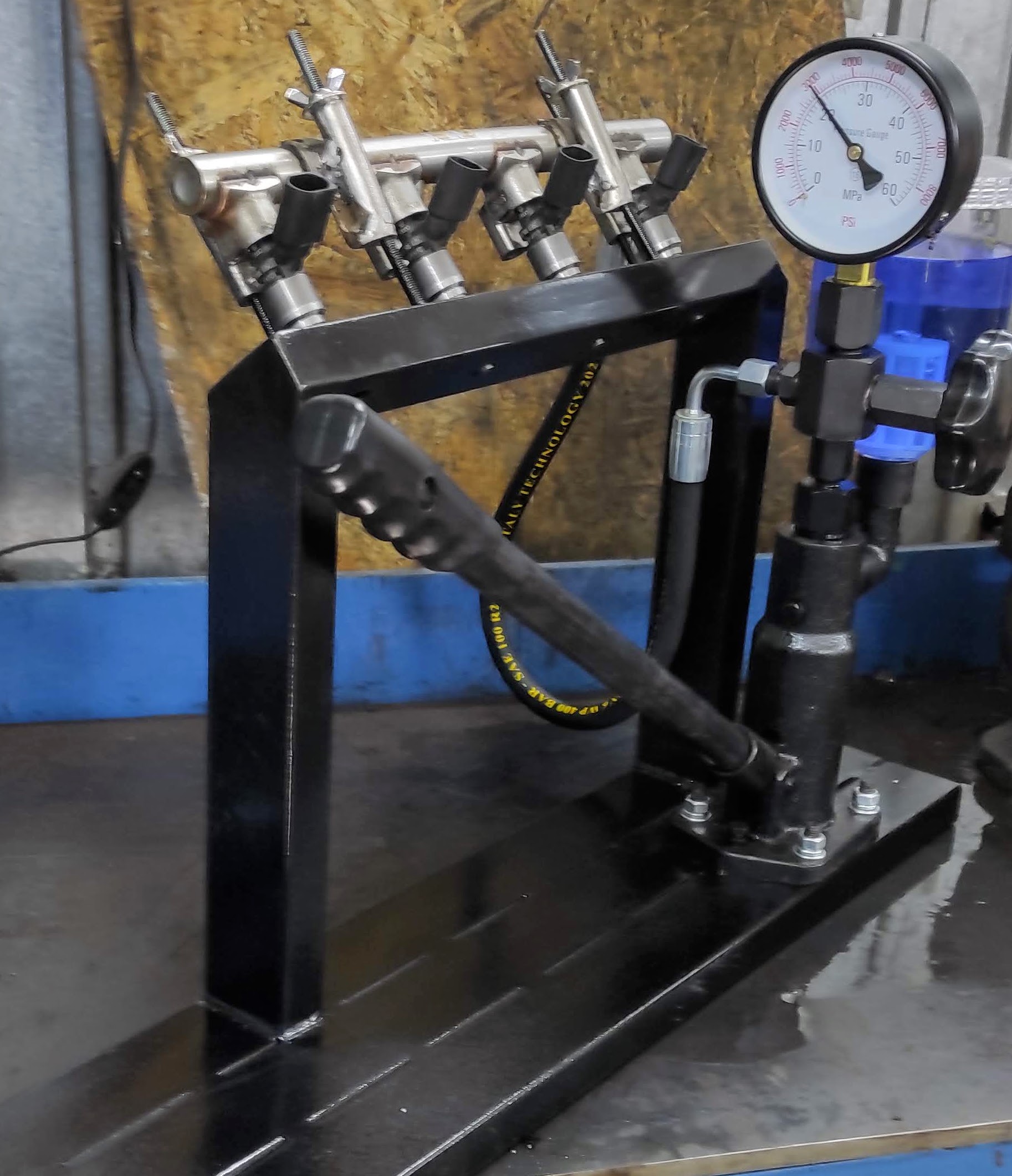 Один стенд - проверка высоким давлением на герметичность в закрытом состоянии: Второй - проверка калибровки распыла на одинаковость производительности: