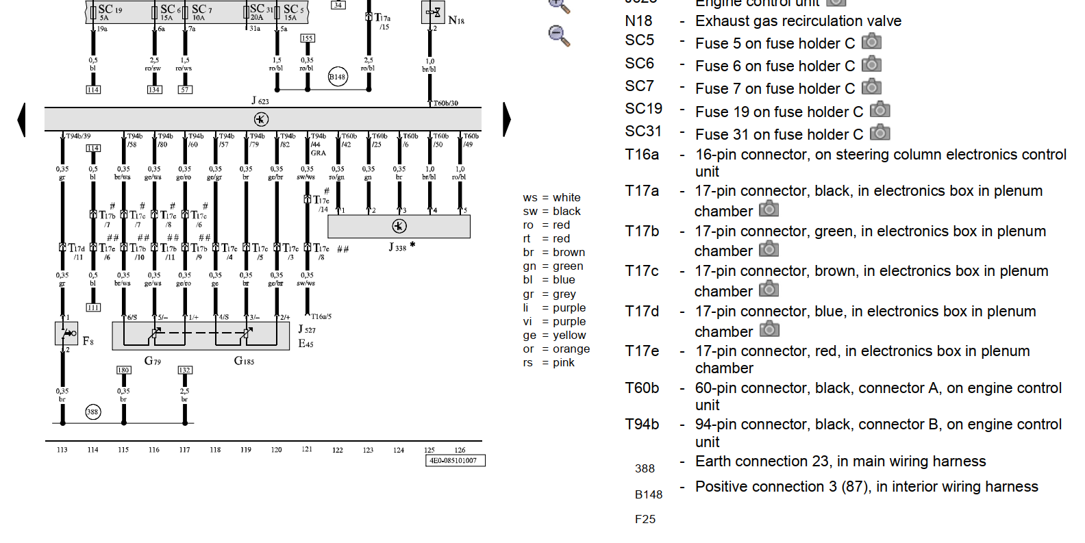 Да, обе массы датчиков Г79 и Г185 уходят в ЕБУ, но по логике с ЕБУ должна выйти общая масса на кузов, вот её я и не могу найти, чтобы проверить. F8 это кикдаун