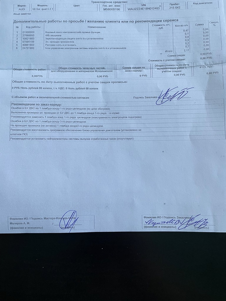 Сегодня посмотрел,Ю ошибка из низкого напряжения превратилась в - 000306 ряд 1 зонд 1 р0132 - 001 слишком высокое напряжение, показатели корректировки стоят по нулям и не дергаются. Видимо отошла лямбда окончательно.