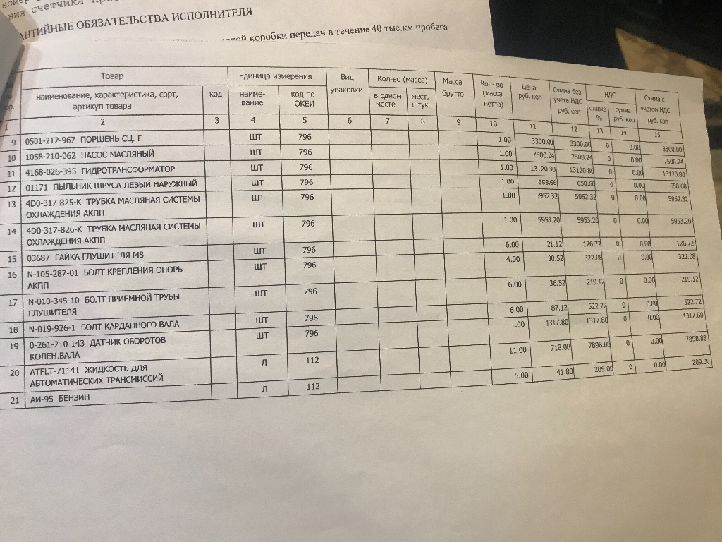 Заказ-наряд прилагаю и список запчастей