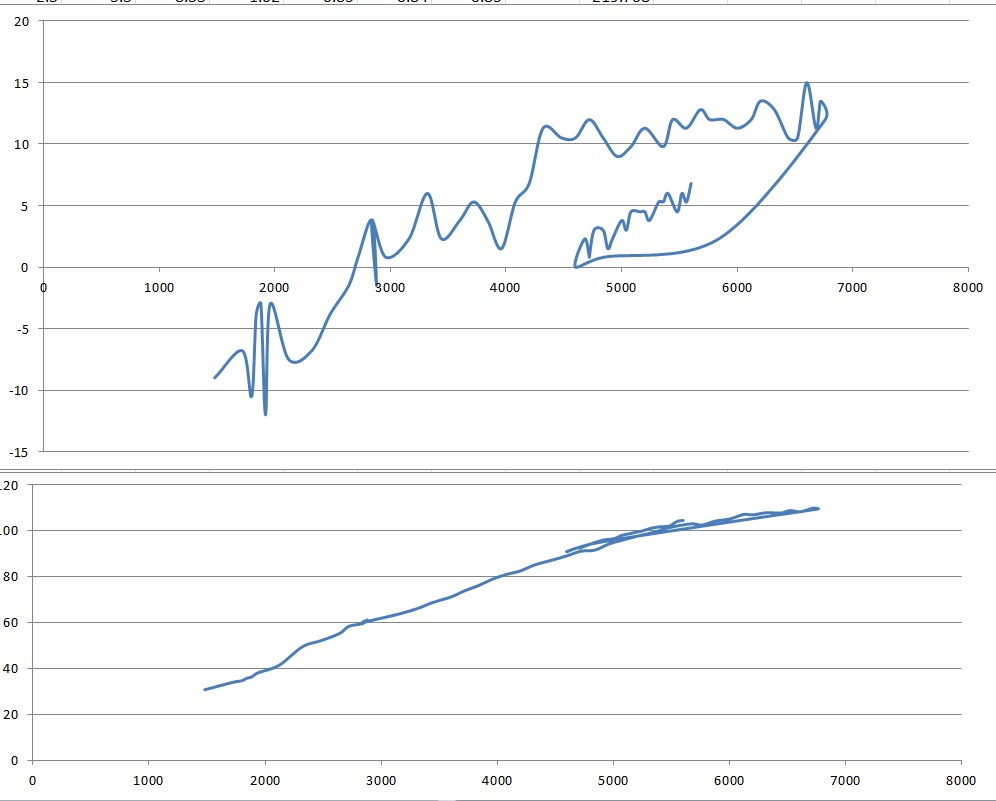 Итого получилась явная грусть,в виде массового от 30 грамм в секунду до 110 максимум,и угол аж с отрицательного начинался при разгоне,и конечно же были откаты УОЗ.