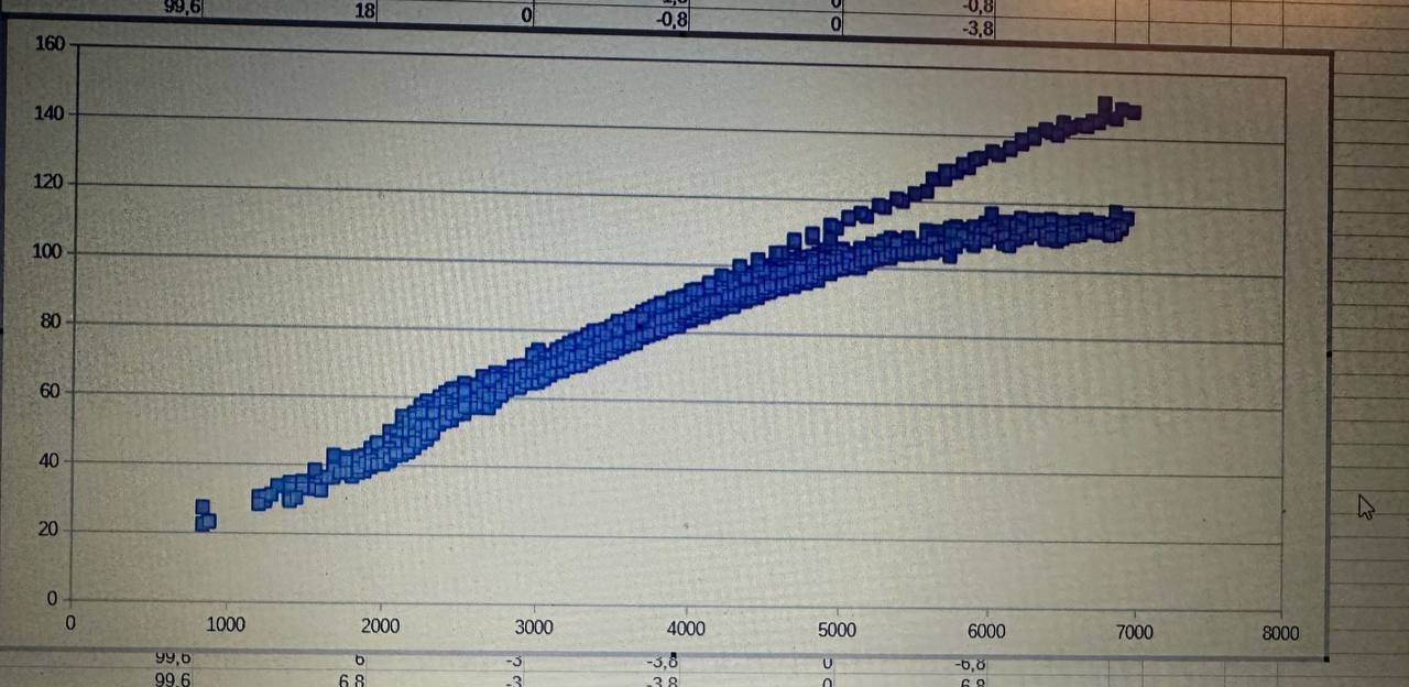 Итого получилась явная грусть,в виде массового от 30 грамм в секунду до 110 максимум,и угол аж с отрицательного начинался при разгоне,и конечно же были откаты УОЗ.