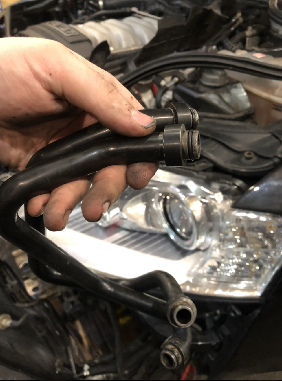так то в таком положении у меня получилось просто выдернуть эту верхнюю трубку, отсоединив ее за двиглом. но сомневаюсь что смогу это сделать на машине.