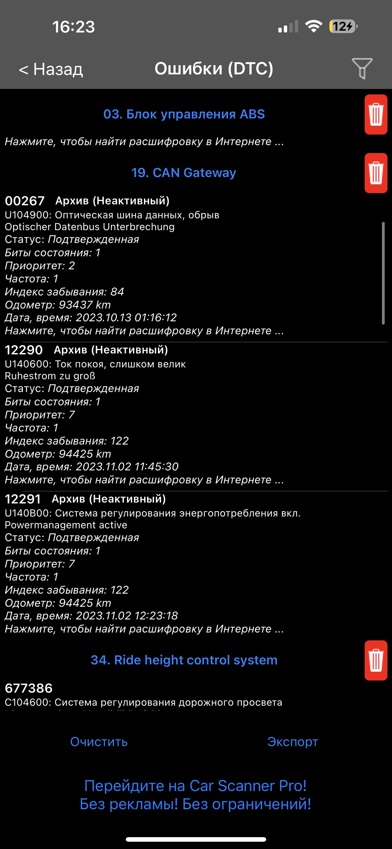 Утром на трассе загорелась ошибка "Пневмоподвеска: системная неисправность!" доехал, посмотрел внешне все нормально, попробовал заглушил, завел, ошибка также висит, в обед сигналка позвонила на телефон "низкий заряд батареи", ни чего не понял, погрешил на аккумулятор, так как не знаю какой он свежести, завел поехал на сервис, на сервисе выхожу и слышу как молотит компрессор без остановки, позвал электрика, тот подоткнул комп, принудительно выключил компрессор, нашел реле за задней спинкой, сказал что такое уже видел, "прикипел контакт" Почистил, воткнул обратно, попробовали, включается, выключается, сказал купить новое реле. Выезжаю проехал, 50-100 метров, загорелось оранжевым "Пневмоподвеска систем.неисправность! Возмож.медленное движение с макс.скоростью 60км/ч". Электрик занят, делать нечего поехал домой, (30-40 мин) по приезду обнаружил что зад лежит наверное полностью, компрессор молчит, выкл., вкл. зажигание пишет "Пневмоподвеска: слишком низкий клиренс. Процесс регулирования клиренса", включается компрессор, но зад как лежал так и лежит с обоих сторон, ни на сантиметр по-моему не поднялся, выскакивает ошибка "Пневмоподвеска систем.неисправность! Возмож.медленное движение.." компрессор выключается, так пробовал несколько раз. Есть примитивный сканер OBD, там куча ошибок, ни чего стирать не стал ибо не знаю стоит ли.. Оба балона не могли же приехать сразу?