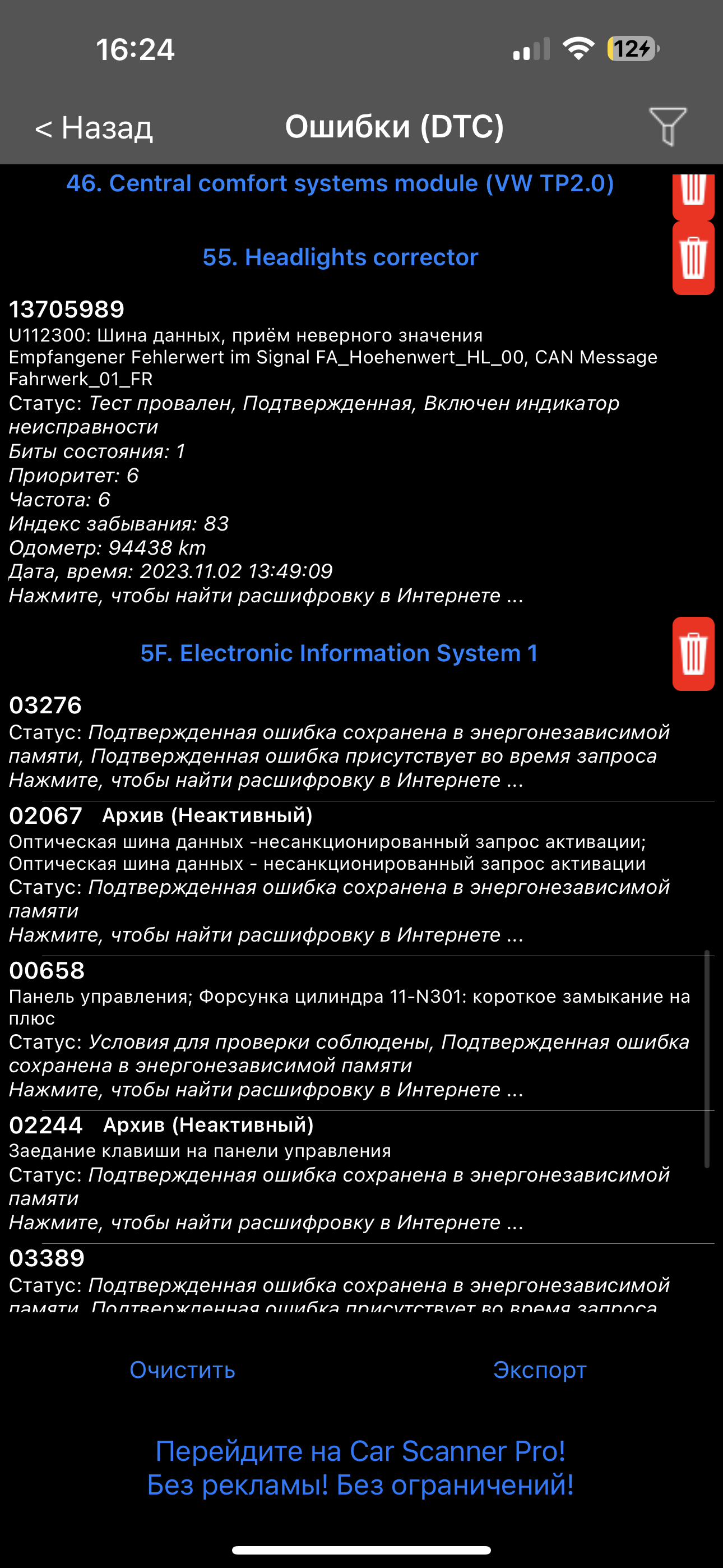 Ну раз есть и по фарам значит датчик какойто или проводка к нему хотя в ошибках нет его ,надо удалить ошибки и заного прочитать.