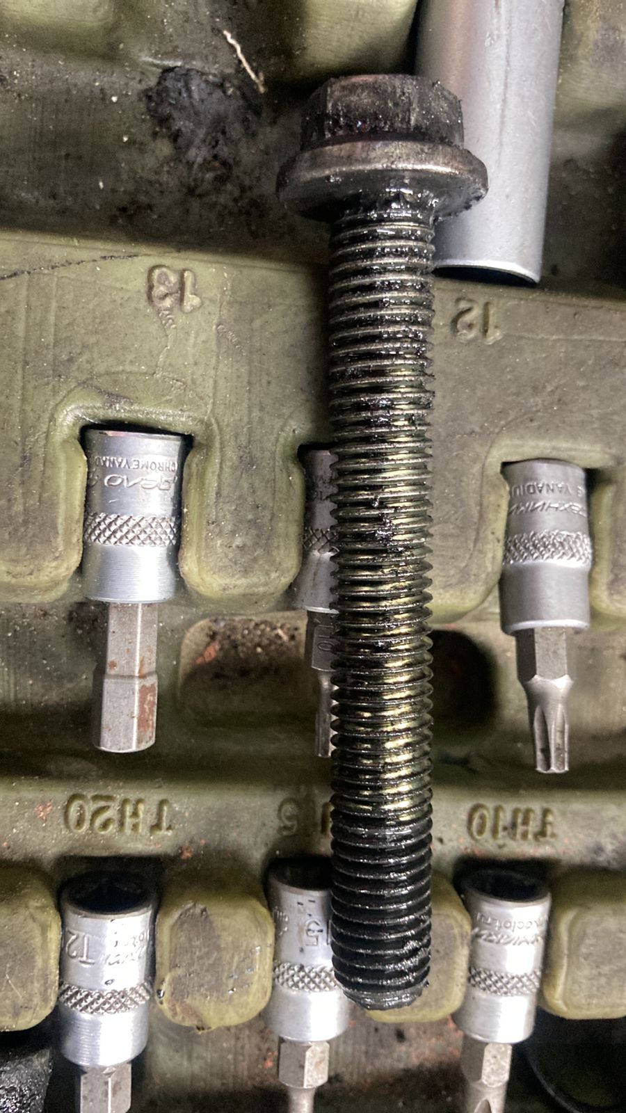 Нашел нижний болт болт, такой как нужно, поставил на машину, двигатель даже не провернуло, получил дубль номер два