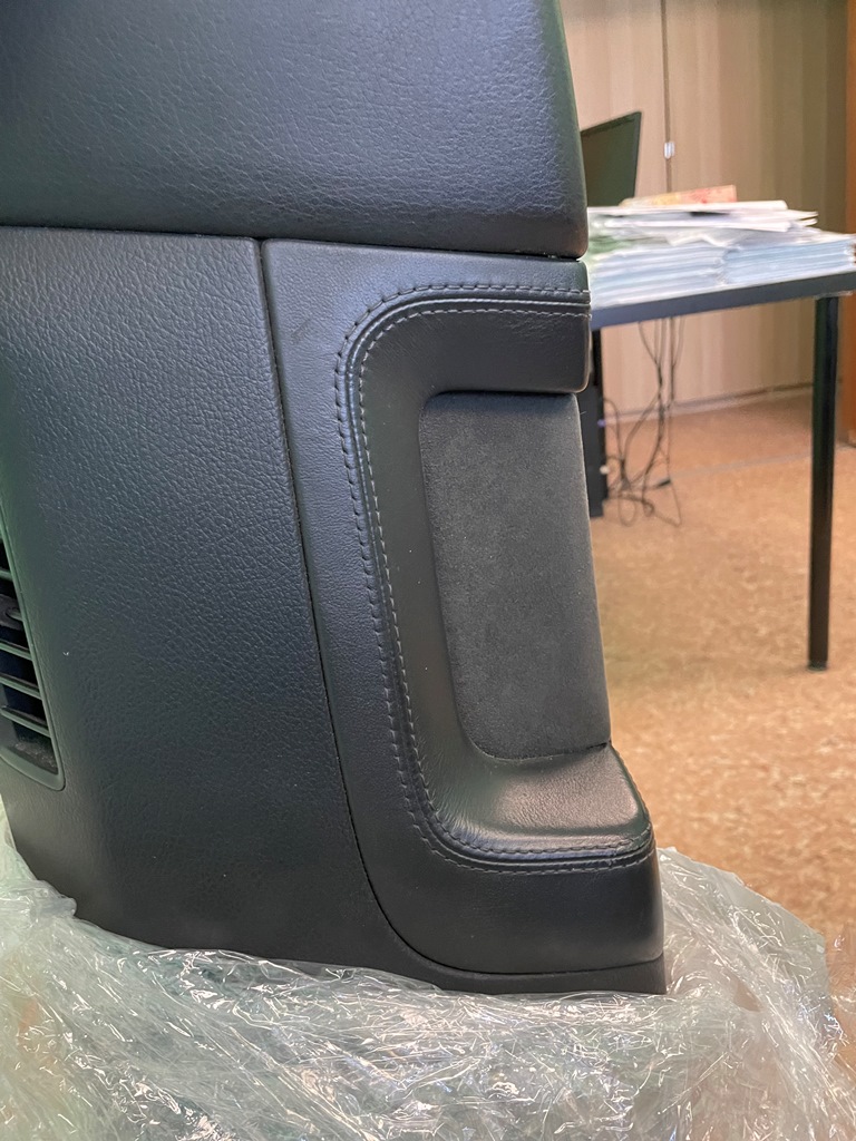 панель под рулем в коже, в идеале, кожа матовая без царапин. Вставки в стойки центральные в коже с алькантарой пассажирская в идеале, водительская чуть блестит, от локтя видимо и на углу нужно подкрасить, но совсем немного, в целом хорошо.