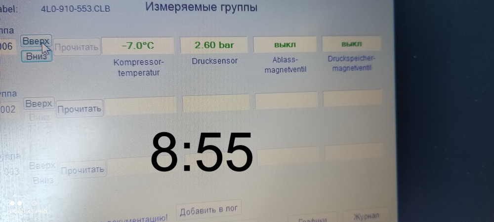 Потом зайти в базовые установки группа 23 нажать вкл и компрессор начнет качать ресивер в последнем окошке будет показывать давления в ресивере.