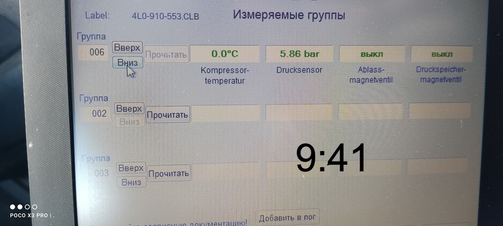не уверен, что это значение - давление в ресивере включил тест исполнителей.. несколько минут тарахтел компрессор, остановился, ничего не происходит . Прервал тест кнопкой. Появилось сообщение тест пройден.