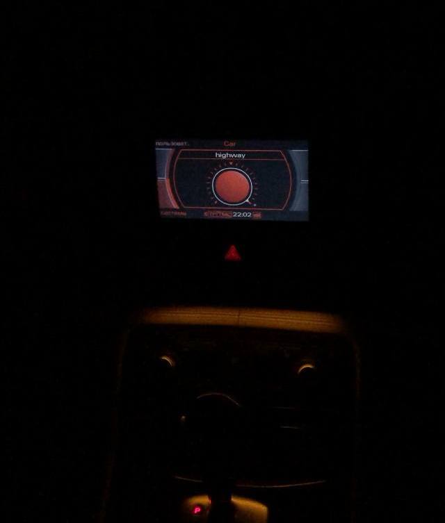 Подсветка пришла, валялась год, пыль собирала, ждала своего часа. Тут появилось свободное время и повод ею заняться. А именно доустановка сайд ассиста и перенос DVD плеера из багажника в бардачок. Все прекрасно помнят о подсветке тоннеля над климатической установкой, о которой слагают легенды. Именно она как мы помним проиллюстрирована в ELSA, но по каким-то причинам не пошла в серию. А после 2003 года её и вовсе начали запаивать. Например в автомобилях 2004 и 2005 года которые я встречал, это место запаяно наглухо, и никакого выреза и его следов там уже нет. Ну а у меня он был, причем вместе с крышкой (кстати тоже с оригинальным номером). Взял оригинальные провода с донора, флисовую ленту, прокинул проводку, сделал подсветку нужной длинны и подключил её к родной фишке сигнализации (которая находится рядом с соединением фишки карты с ЭБУ двери), у неё как раз был один свободный пин, чем я и воспользовался и запиновал его подключив туда + от контурной подсветки. Теперь подсветка центрального тоннеля полностью регулируется в настройках контурной подсветки MMI и работает синхронно с дверьми. Ну а как она выглядит, словами и фотографиями не передать. Бежевый салон и золотой цвет...идеальное сочетание. Позже постараюсь наделать фоток, но пока сделал обычную фотографию по пути домой, ехал через лес, и там как раз так хорошо притемнило. Примечательно что подсветка хорошо подходит под классическое оранжевое меню MMI 2G