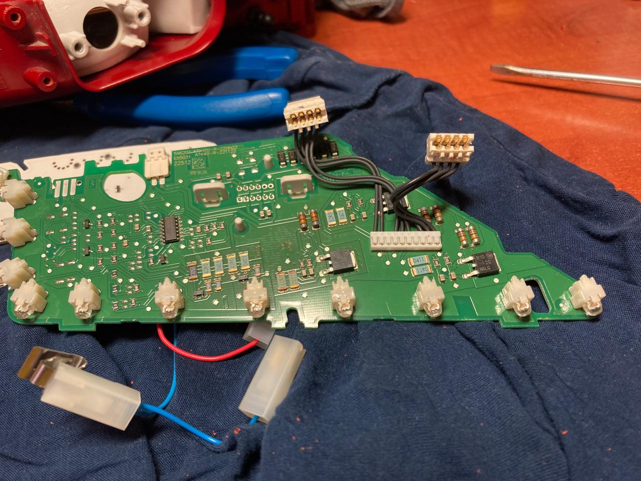 Ещё отличие купленных светодиодов - они исключительно направленного света - очень ярко светят, но только прямо, а родные ещё и с боков свет дают (но более рассеянный).