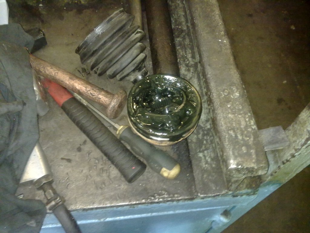 13) Снимаем гранату справа (внешняя сторона) выстукивая ее молотком (аккуратно, может децл накрениться и застрять, подбивать с разных точек