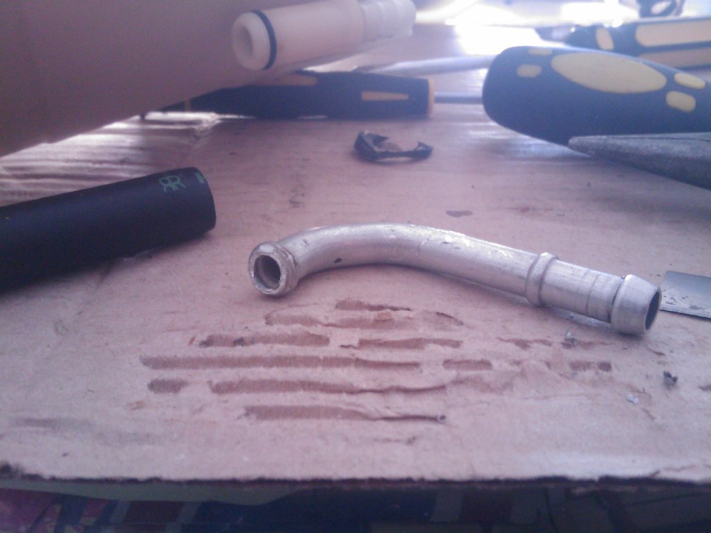 По топливу - была взята трубка от основного насоса с С-ки, дотаточно длинная по той же причине, что и провода (думаю без проблем можно взять любую подходящую бензостойкую трубку, давление там небольшое - думаю, меньше атмосферы). Один конец трубки цепляется оответственно на насос, второй - на алюминиевую трубку и зажимается (на фотке соединение для этого выделено гламурным кружком), при этом освободившуюся трубку заткнуть