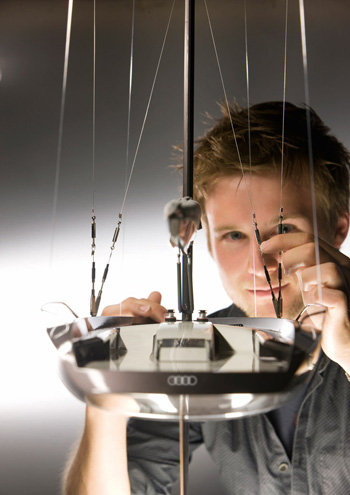 Помимо отдела дизайна в Ингольштадте, над обликом марки Audi уже в течение 25 лет трудится еще одна студия, расположенная в мюнхенском районе Швабинг. Основное направление деятельности студии – дизайн автомобилей будущего. «Это увлекательная задача, конструировать автомобили, которые будут нравиться людям через 20–30 лет», – говорит Эггер. – «Здесь требуется вдохновение и творческое видение. Поэтому мы одновременно занимаемся дизайном других объектов. Когда наши молодые дизайнеры переносят философию марки на объекты вне автомобильной сферы, они получают более глубокое понимание языка форм Audi, экспериментируют с поверхностями, контурами и материалом. Эти идеи затем используются в дизайне серийных автомобилей».