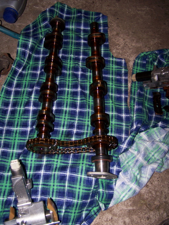 14. Открутить крышки распредвалов и снять оба рспредвала с натяжителем цепи/регулятором фаз газораспределения