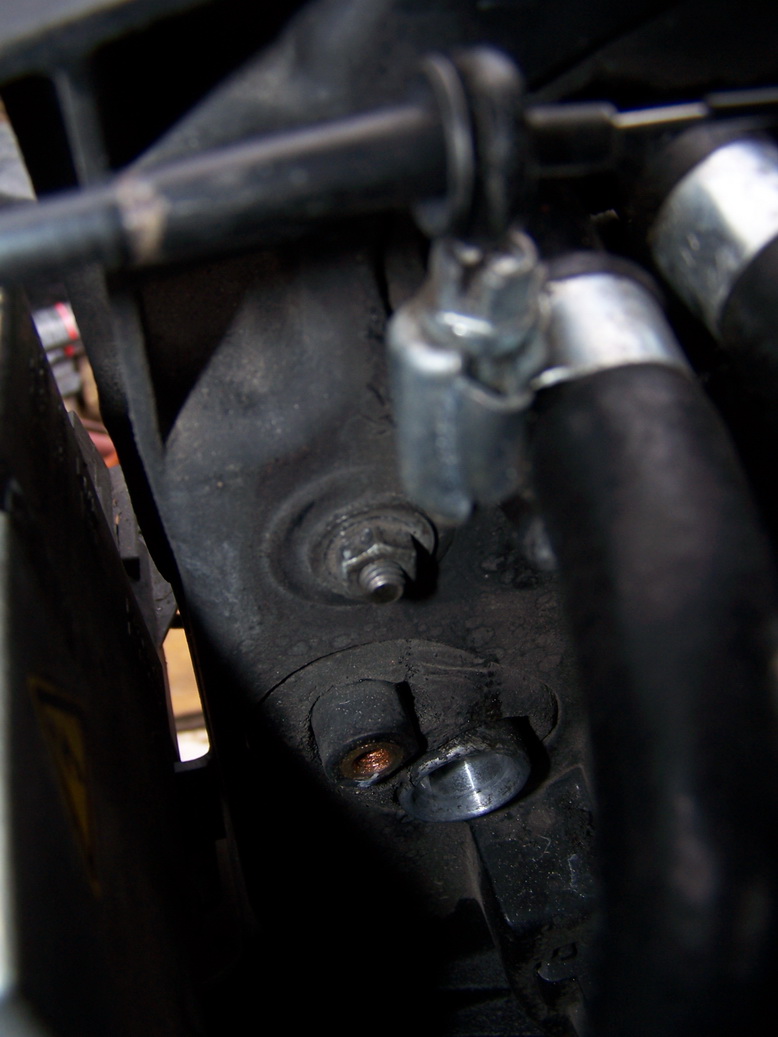 Открутить болты крепления передней подушки двигателя и снять ее.
