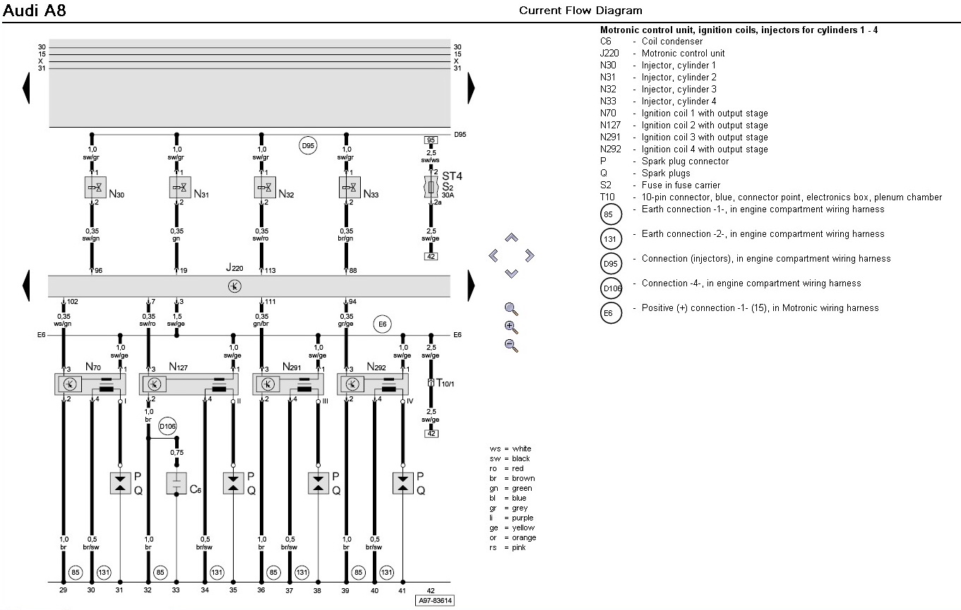 Отсюда вопрос: есть ли на пути от форсунок к БУ ДВС какие-либо далеко закопанные разъёмы, которые могут окислиться? И куда приводит провод от диагностической колодки, прямо к БУ ДВС? Хочется первым делом восстановить связь Ваг-кома с двигателем.
