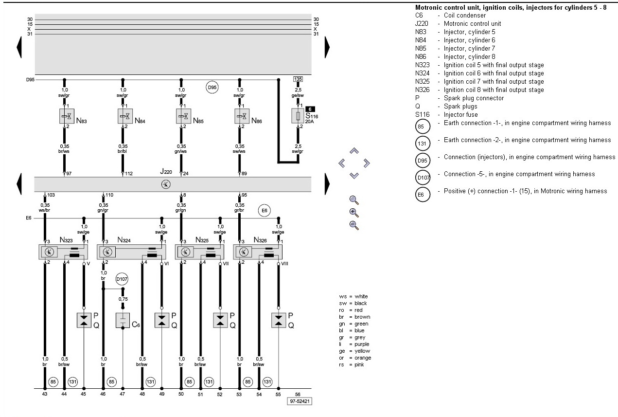 Отсюда вопрос: есть ли на пути от форсунок к БУ ДВС какие-либо далеко закопанные разъёмы, которые могут окислиться? И куда приводит провод от диагностической колодки, прямо к БУ ДВС? Хочется первым делом восстановить связь Ваг-кома с двигателем.