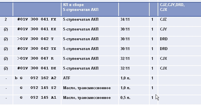Чтоб я вопросы задавал?5 speed automatic gearbox with central differential CJT,CJS,CUE,DSL,DTD,DRN,DYM,DEY,ECX,GDB,GDC