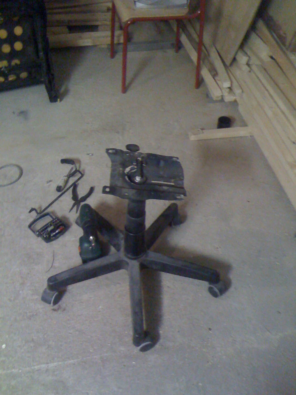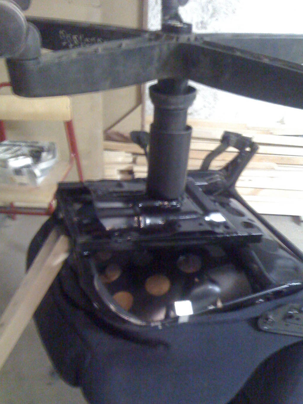Далее всё происходило ровно и гладко, приварили основание кресла к ножке и зачистив заусенцы покрасили в любимый чёрный мат. И вот, рабочее место вновь начинает радовать. Прошу прощения за качество фото, снимал на телефон.