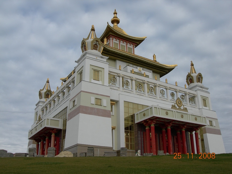 Элиста – городок действительно очень небольшой городок. Основная артерия – улица Ленина, на которой расположено буквально все. Очень символично то, что в начале улицы расположены роддом, поликлиника, школа, далее пошли все возможные и невозможные контрольные и надзорные органы, правительство, университет, прогимназиия, банк, казначейство и т.п., а завершает улицу тот самый новый и большой в Европе храм Будды Шакьямуни, СИЗО и кожвендиспансер. Не удивлюсь, если где-то буквально в двух шагах от них был морг и кладбище, которые мы просто не заметили.