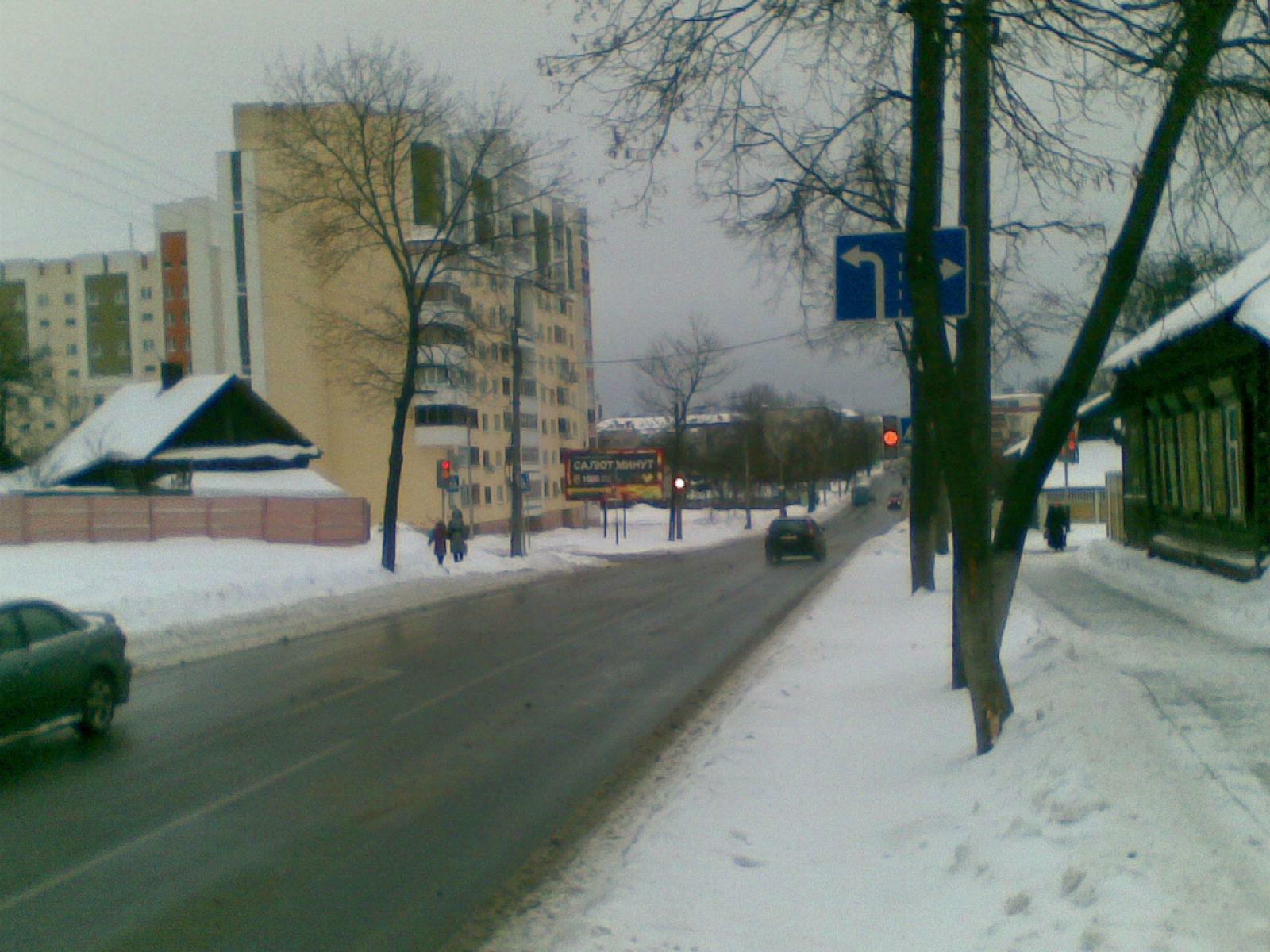 Выкладываю фотки этого участка в светлое время. Соверешенно прямой участок (на этой улице есть участки и поопаснее). Причина аварии точно не известна, за исключением превышения скорости и гололеда, но наверняка все началось с какого-то маневра, после которого машину уже не смогли поймать. В сообщении писалось что два столба и дерево были задеты, осмотрел все деревья и столбы в районе того перекрестка, чтобы понять откуда движение шло и что могло стать возможной причиной, но все столбы и деревья целые и следов на них совершенно не видно.