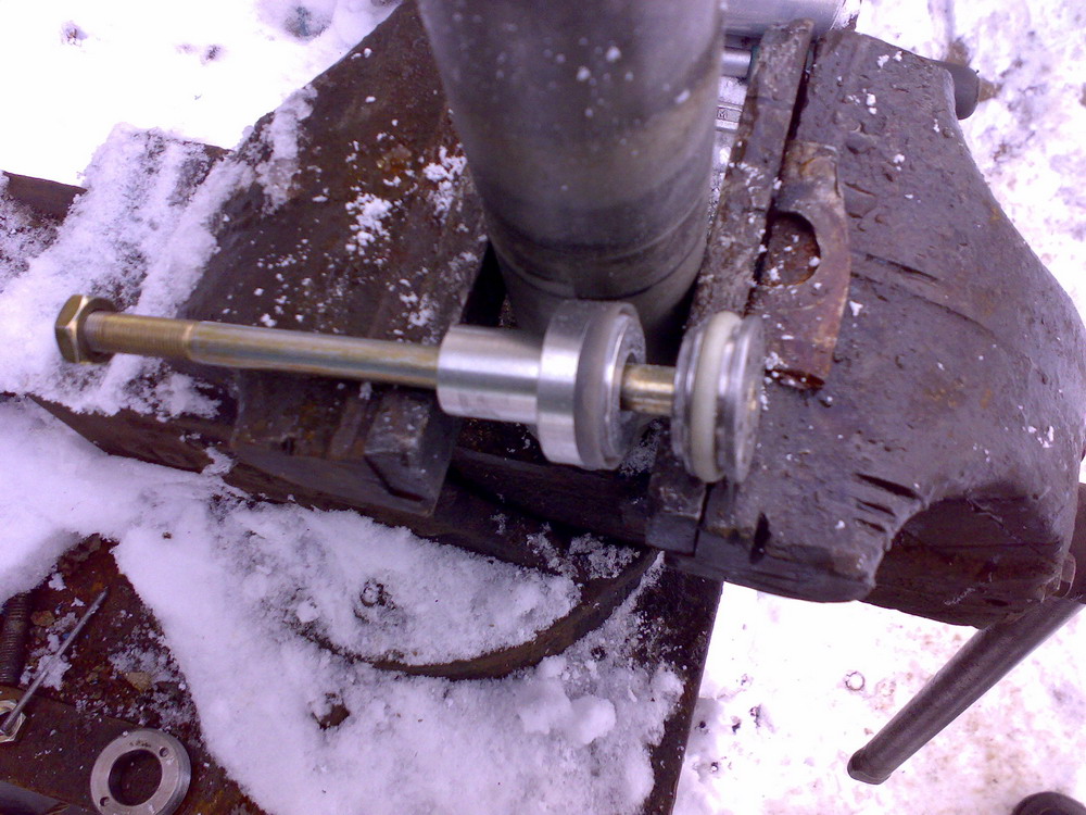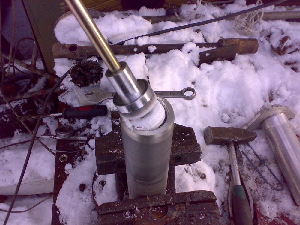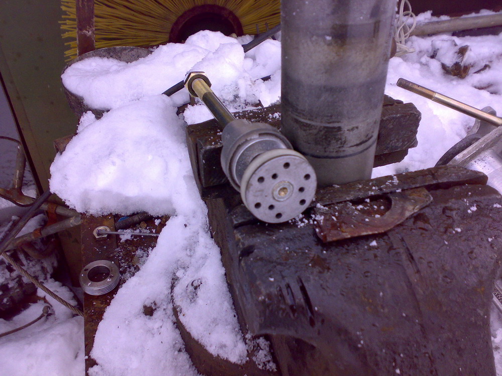 Несколько неудобно было его набивать т.к. плохо выходил воздух, а маслонагнетатель этот литол не брал. Но мы не привыкли отступать…, словом после этого всё собрал в обратной последовательности, отрегулировал длину демпфера по старым грязным меткам от сальника большего цилиндра.